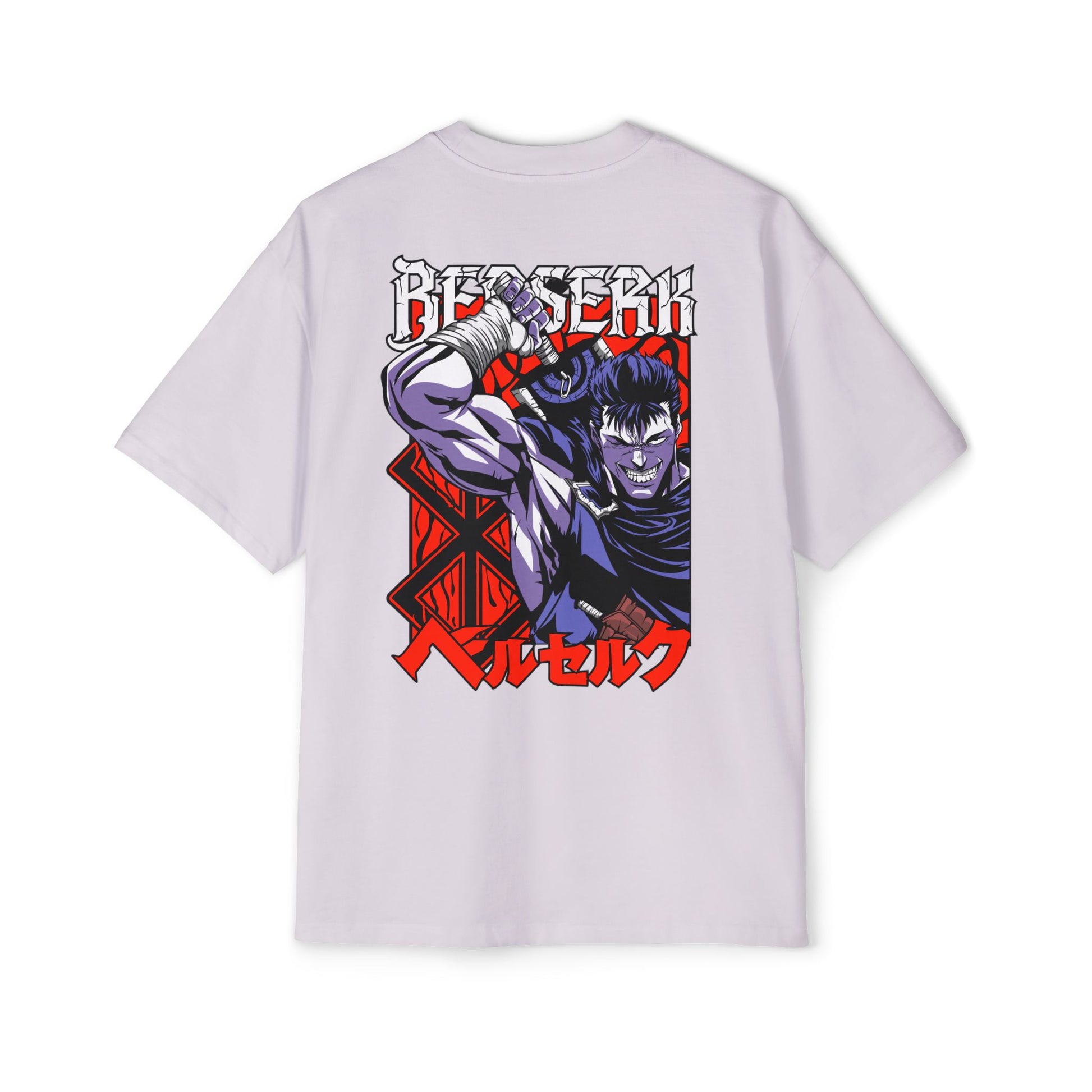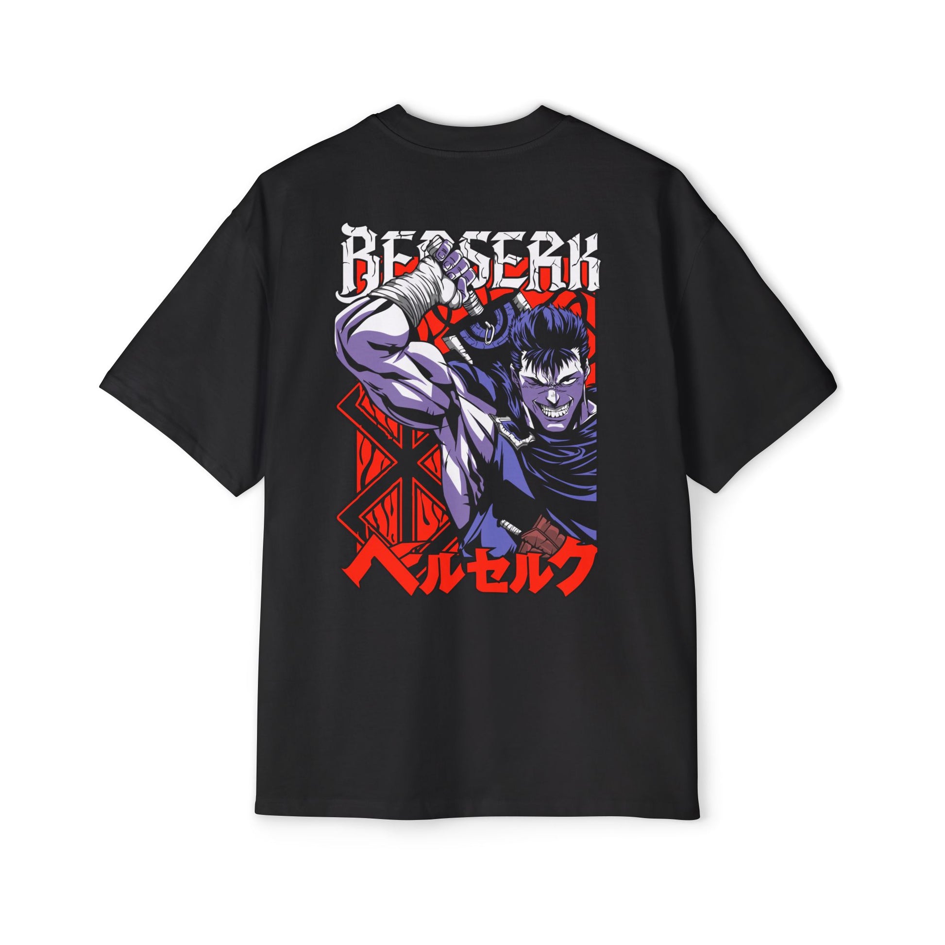 This oversized, heavyweight tee features a bold graphic of Guts from Berserk, capturing the raw intensity and dark edge of the iconic manga. Crafted from thick, premium cotton for a relaxed, durable fit—perfect for fans who want comfort with attitude.