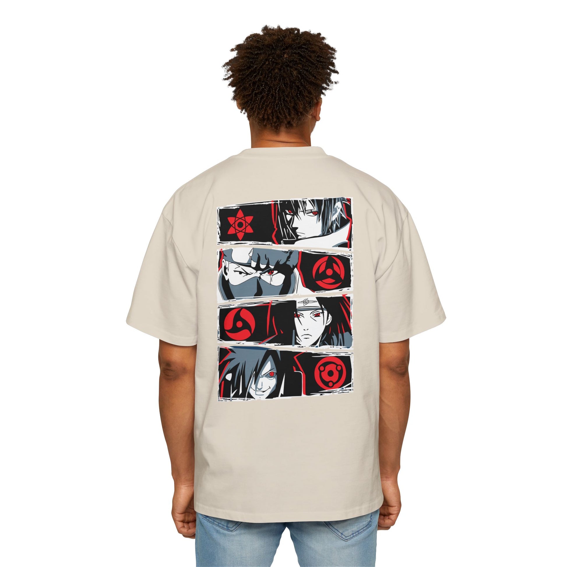 Heavy/Baggy Tee - Sharingans is a streetwear-inspired oversized t-shirt that blends comfort with anime aesthetics. Made from thick, high-quality cotton, this tee features a relaxed, drop-shoulder fit and showcases a bold design centered around the iconic Sharingan from the Naruto series. Ideal for fans of urban fashion and anime culture, it delivers both standout style and everyday wearability.